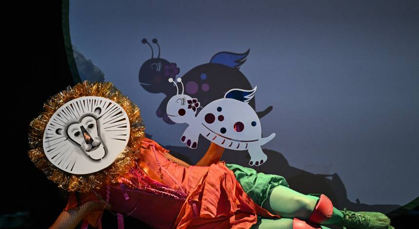 Unha fábula sobre a solidariedade e a empatía narrada sen palabras e acompañada pola alegre música de Camile Saint-Saëns. Crean así pezas que son poesía, que relatan historias visuais e musicais enmarcadas no teatro de sombras utilizando diversas tecnoloxías que van das máis tradicionais ás máis experimentais.