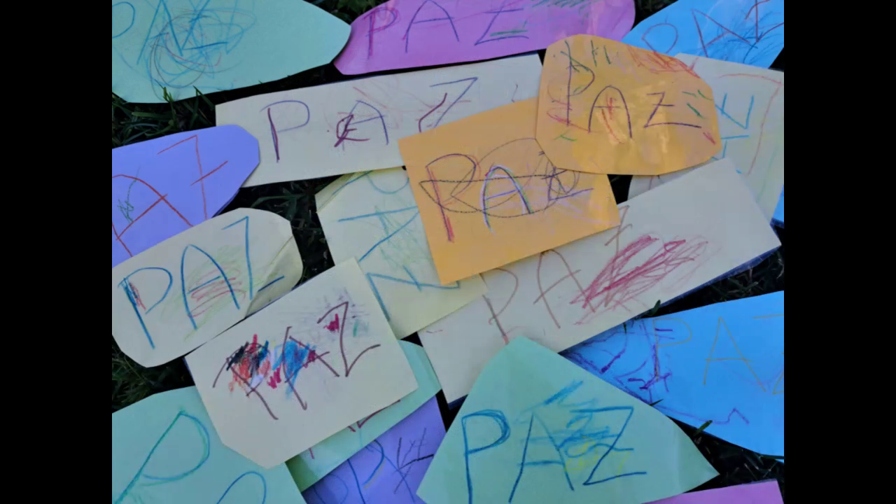 Marcapáginas coa palabra "Paz" realizados polos nenos e nenas da EIM Monte Alto